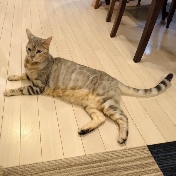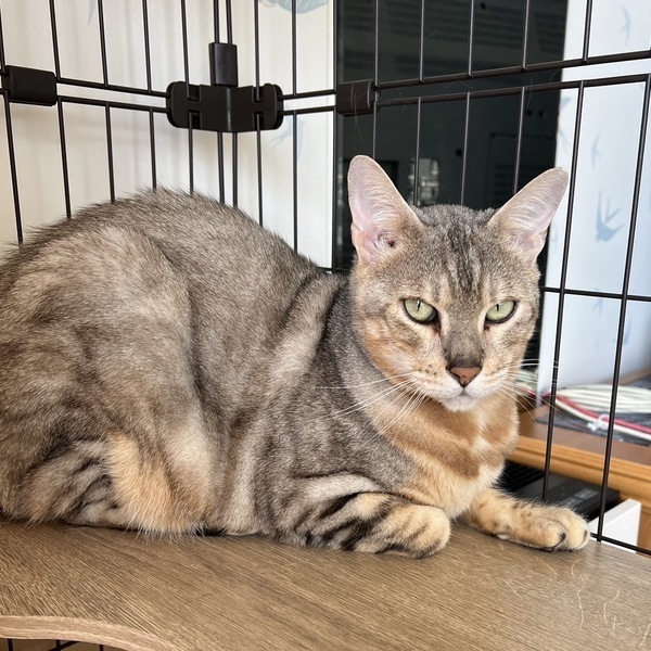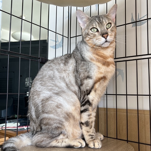 | 特徴(性格など) | ◎パンくん(ベンガルまたはベンガルミックス)5歳♂ 5.6kg 高齢者夫婦とその40代の娘さんが飼っていました。ほとんどずっと人が家にいる環境でした。他にも小型犬や猫がいました。誰とも喧嘩したりせず、猫にも人にも慣れてますが、最初はちょっとクールな印象でした。 ところが、現在の預かり家庭に来てから数か月がすぎ、最初は触れられることも避けているパンくんでしたが、じょじょに新しい環境にも慣れてきて、なでたりできるようなってきました。足元にもスリスリしてきます。 おもちゃで遊ぶのも食べることも大好き。とても食いしん坊なので、2人でならちゅーるをあげている隙に爪切りもできます。 なぜか大人猫、子猫を問わず茶白のオスが好きみたいで、子猫には毛繕いしてあげたり、とてもよい保父さんぶりを発揮しています。なので先住さんのいるおうちでしたら、茶白の子とのペアリングがよいかも。 これぞベンガルという、とても賢く、運動能力は抜群、食欲旺盛、健康状態もとてもいいです。 ※YouTubeみなとねこチャンネルでも紹介動画をご覧いただけます。 https://youtu.be/k38qEFYdwo8?si=90oVgsC99bZNx4tC ●健康状態 とても健康で元気です 避妊手術済み ウイルス検査(エイズ・白血病)陰性 ワクチン 駆虫 検便 シャンプー 爪切り |