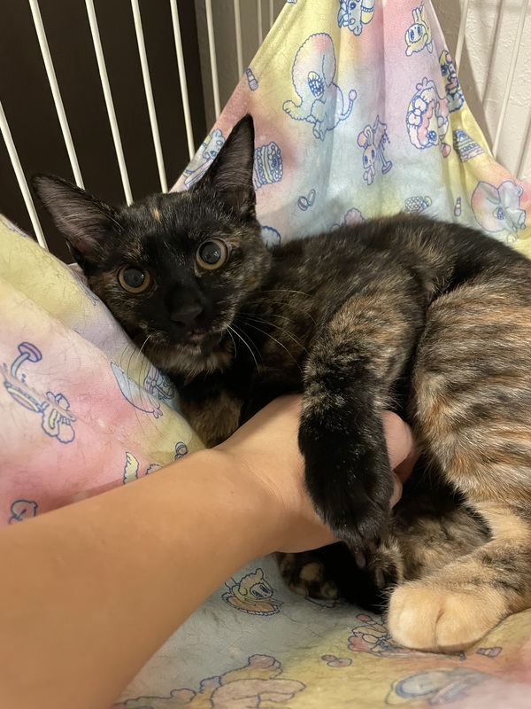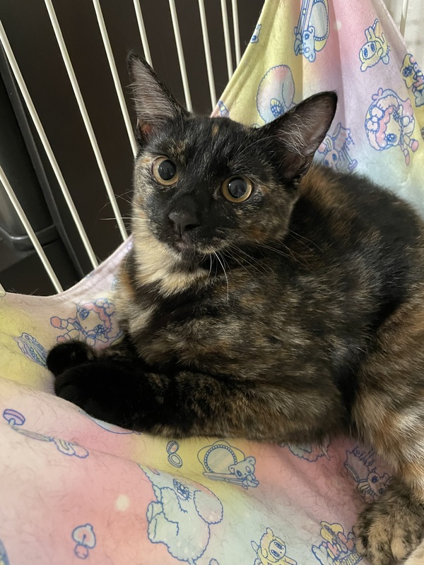 | 特徴(性格など) | 最初はかなり警戒心強めでしたが もう撫でるとゴロゴロ甘えてくれるようになりました。 ハンモックなどに吸い付く癖があります。 サビ猫ちゃんです。 |