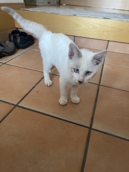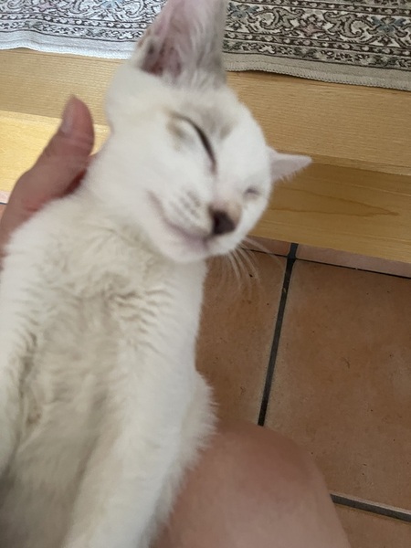 | 特徴(性格など) | 4〜5ヶ月との先生の見たてです。 しっぽが茶色でしましまでかわいいです。お顔も茶が入っていて、これからどんな風に成長するのか楽しみなイケメンくんです。 かなり人が大好きで、すりすりしてひっくり返ったり、全身わしゃわしゃとさわれます。男の人も女の人も誰でも怖がらずすりすりします。抱っこでも、リラックスします。会ってふれていたただければ、虜になりますよ。 とっても、フレンドリーで、おおらかです。うちのわんこがケージ周りにきても、鼻つんして逃げず、おこりません。よくおしゃべりもします。1人遊びも上手です。 |