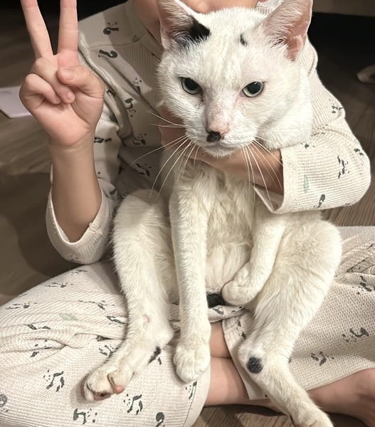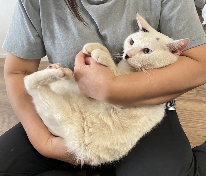 | 特徴(性格など) | <初期医療> エイズウイルス検査:陰性 白血病ウイルス検査:陰性 ワクチン接種:済 ノミ・ダニ駆除薬:済み 去勢手術・血液検査:済み 糞便検査:済み 推定2歳の白キジの男の子です。鍵尻尾で、お顔としっぽがキジ模様です。人が大好きで子供でも抱っこできます。保護して間もないのでもっと白く綺麗になります。抱っこ好きの甘えん坊なので、お子様がいるお家や初心者様にもオススメです。 |