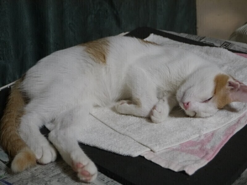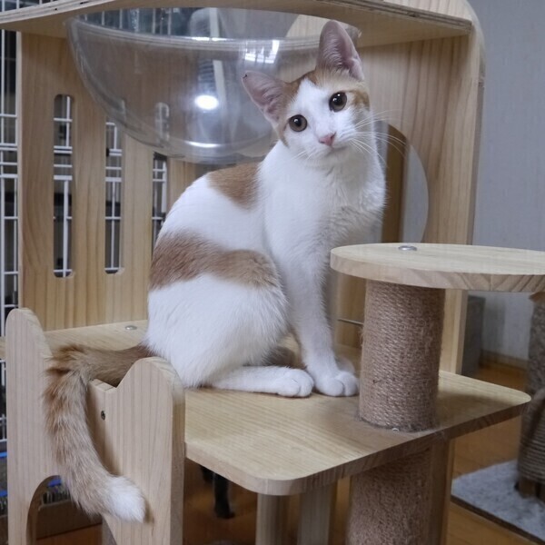 | 特徴(性格など) | 保護した時より元気印。部屋の中で隅から隅まで走りまわっていましたが、 最近は落ち着きが出てきて静かに過ごしている時間が増えてきました。 体の線は細くスラっとしていて優しい雰囲気のある子。 とても甘えん坊タイプではありません。 触られたり抱っこもできますが、短時間ですぐに逃げ出しそう・・・ ちょっと距離感もちたい感じの子です |