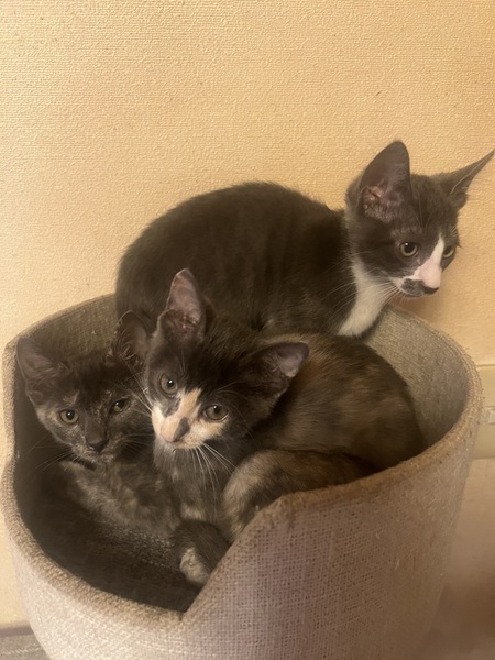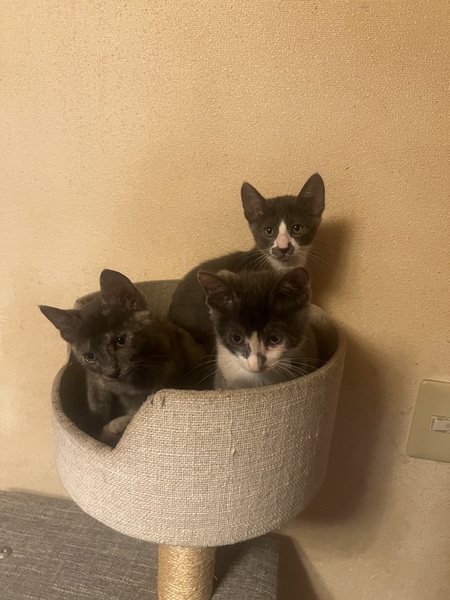 | 里親募集する理由 | 近所の野良猫が産んで生後10日後ころから保護しています。ワクチン近日接種予定です。3匹は扶養できないため里親募集しています。初めて募集するため不手際があるかもしれません、よろしくお願いいたします。 | ||