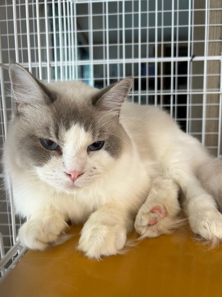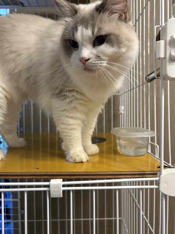| 特徴(性格など) | 名前(仮): シェルパ 性別: オス 種類: ラグドール 毛色:ブルーポイントバイカラー 年齢: 2022年3月12日生まれ 体重: 4.0kg 性格: 甘えん坊 トイレ: 猫砂100% 日常の様子:人見知り場所見知りをしますが、すぐに慣れます。一度慣れるととても甘えん坊です。他の猫ともトラブルにはなりません。人が好きで、人の側でゴロゴロと喉を鳴らしてゴロンとお腹を見せて甘えます。抱っこやブラッシングも嫌がりません。 お手入れ:シャンプータオルでこまめに拭いて、ブラッシングで清潔を保ってください フード: ロイヤルカナン30g X2 健康状態 抗体検査:(FIV・FeLV)マイナス ワクチン:3種混合接種済み マイクロチップ:装着済み 避妊・去勢:手術済み その他:聴診・検便 異常なし、ノミダニ駆除済み・駆虫薬投与済み |