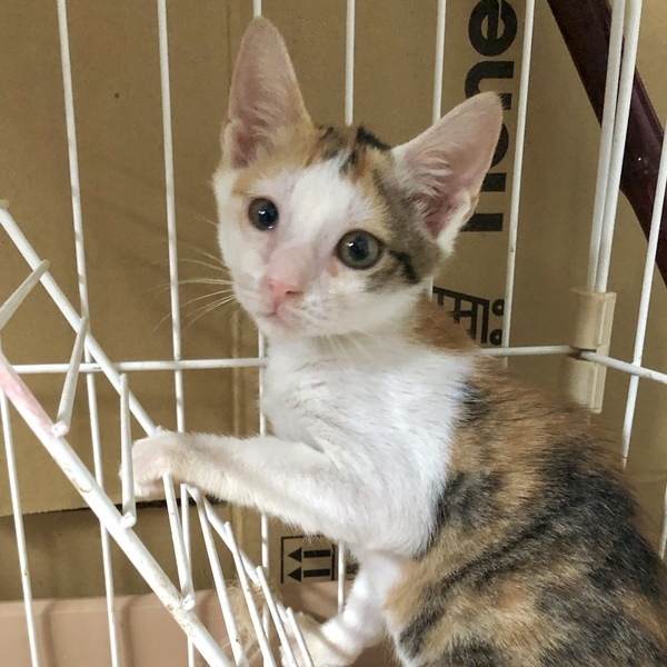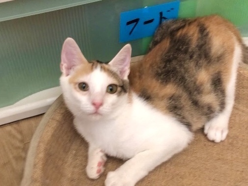 | 特徴(性格など) | 子猫のぽんずちゃん。 三毛の女の子です。 施設に来た頃は、怯えて儚げなお顔でおとなしい性格かと思っていましたが、環境にも慣れてきてくれたのでケージから出てみると意外とお転婆さんでした^^。 物怖じせず先住の子猫達に負けず元気に走り回っています。 フードもしっかり食べてすくすく成長中です! 当団体のホームページや他のサイトでも同時に募集を行っています。少しでも気になられましたら、どうぞお早めにお問い合わせくださいね。 |