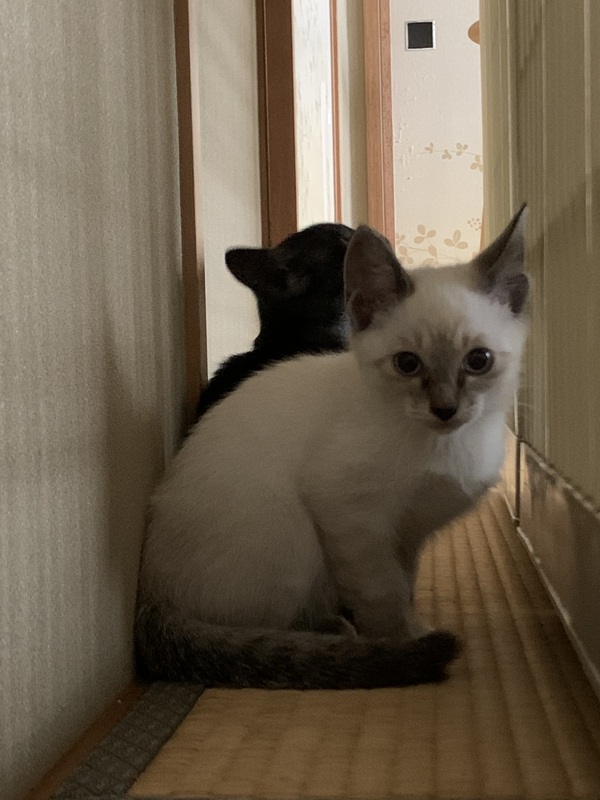 | 特徴(性格など) | 白くてまあるい(仮名)白ちゃん。 お耳や鼻、しっぽ、など先っぽがグレーです。 性格は、3兄弟の中では少しおっとりしていて、他の兄弟より何事も一歩遅れがちですが、 そこが可愛い白ちゃん。 窓の外の景色に目を奪われ、毎日兄弟と遊び疲れて眠くなるまで遊んでいます。 ウイルス検査陰性です。 |
