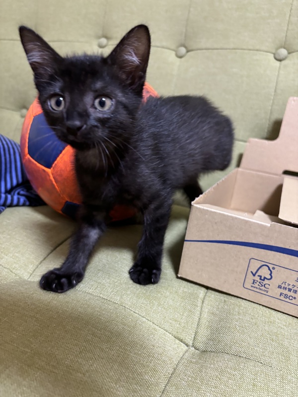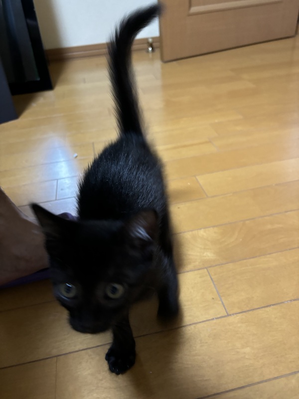 | 特徴(性格など) | 黒猫の仔猫。家の側でウロウロしていた所保護しました。よろしくお願いします。 | ||