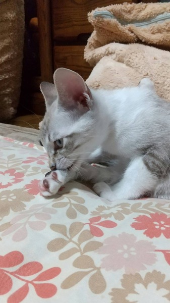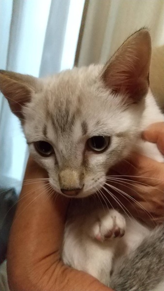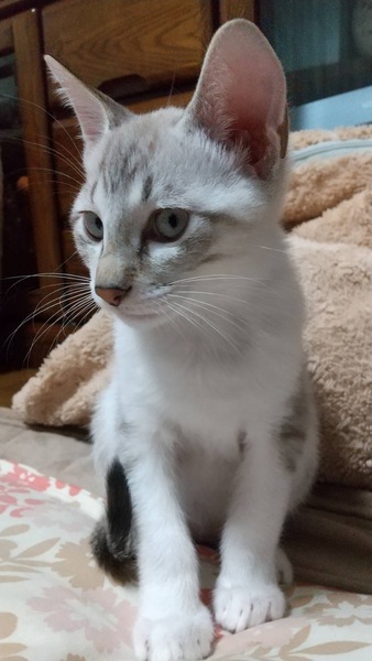 | 特徴(性格など) | シャム柄の可愛い子です。 尻尾が縞模様です。 ヤンチャっ子です。 小さい時から人間と居ますので人懐こい子です。 |