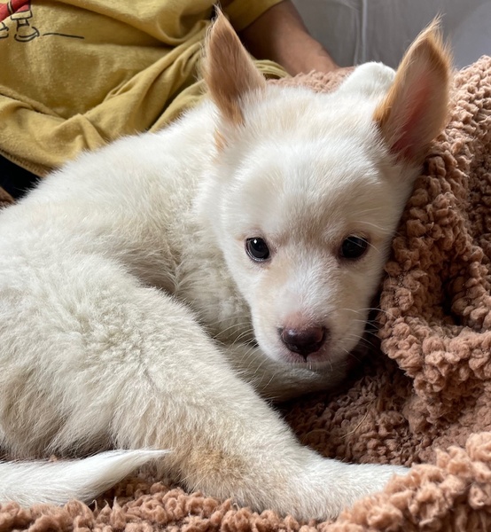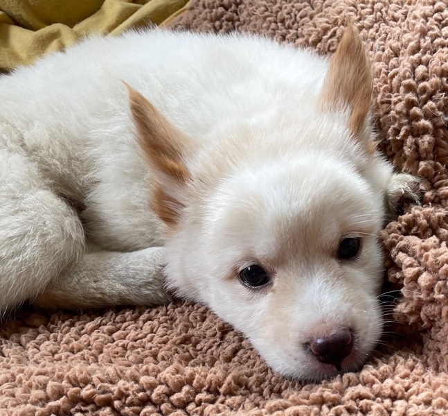 | 特徴(性格など) | 東温市の河原で5兄妹で保護。1,5ヶ月。 父母犬はどちらも野良の白いワンコです。 怖がりでしたが、色んな事に興味が出始め積極的になってきました。 兄妹で元気に遊ぶ姿が可愛らしいです。 |
