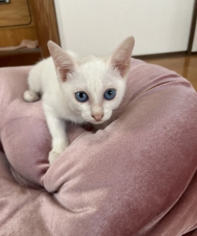 | 特徴(性格など) | ノミダニ駆除・検便済 まっしろの体に目はブルーです。おとなしく甘えん坊です |