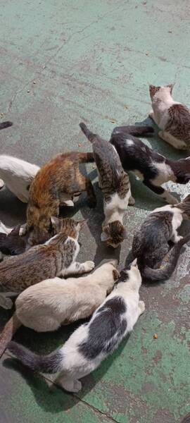 | 特徴(性格など) | 母猫と生まれた子猫達です。柄はサビ、三毛、ハチワレ、白サバなど9匹います。少し警戒する子もいますが、膝の上に乗ってくる子もいて皆可愛いです。母猫はクリーム色です。 | ||