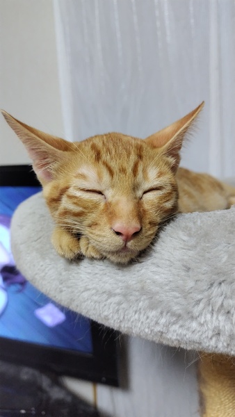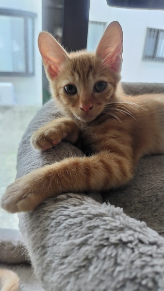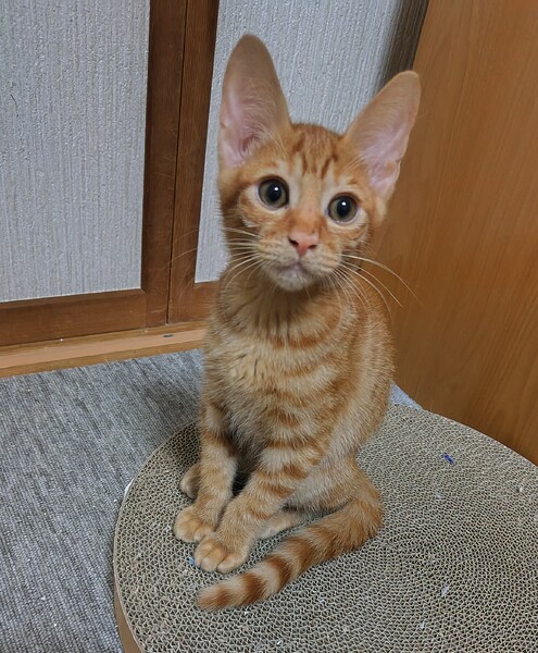 | 特徴(性格など) | 濃いめの茶トラ 大人の猫にもとてもフレンドリーに自分からすり寄っていきます。 見慣れていないヒトには少し逃げます。 あまり大きな声を出したりせずにお利口さんです。 |