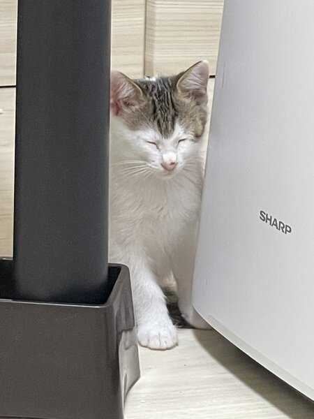 | 特徴(性格など) | よくお昼寝しています。 ちょっとビビりなところがあり、大きい物音などなった場合、すぐカーテンの後ろに隠れてしまいます。攻撃したり、威嚇したりなどあまりしないので、とても優しい子です。 フードもよく食べていて元気です。 病院による検査はしていませんが、親猫を検査したところ、特に問題はなかったため、大丈夫だと思います。 |