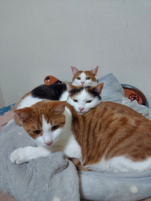 | 特徴(性格など) | 女の子は三毛猫さんで、大人しくて少しビビりな子です! 男の子は白と茶色のハチワレさんで食べるのが大好きで少しヤンチャな子達です! |