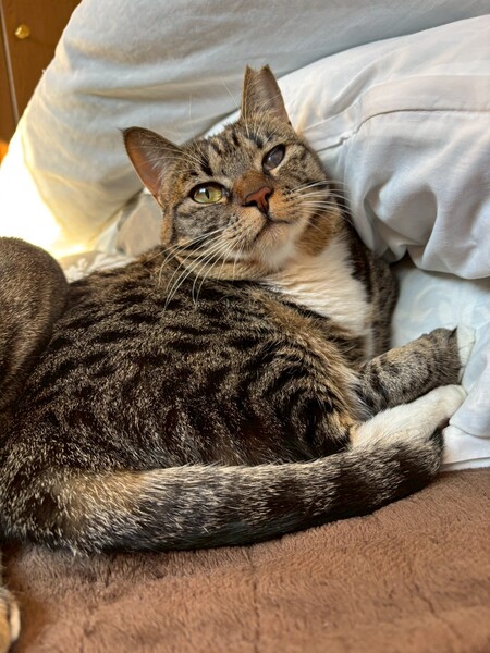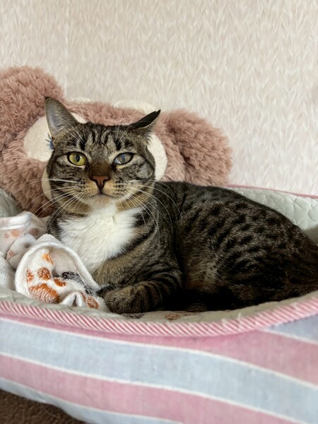 | 特徴(性格など) | ☆名前 かなう ☆性別 メス ☆年齢 推定1歳6ヶ月 (R6.5月末頃生まれ) ☆現在所在地 茨城県神栖市 ☆譲渡対象地域 東京、千葉、茨城 『預かり宅から2時間程度でお願いします』 ☆避妊去勢手術 済 ☆ワクチン 済 最終接種日 R7.10.5 ☆エイズFIV 陰性 ☆白血病FeLV 陰性 ☆単身者応募 不可 ☆高齢者応募 不可 ☆性格・特徴 警戒心が強いので甘えに来てくれるまで時間がかかりましたが、今では後追いをしたり隣で寝てくれるようになりました。 お尻やしっぽを撫でられるのが好きなようで何度も撫でて〜と甘えてくれます。 先住猫達にもスリスリと甘えに行きます。 ケージの中のハンモックがお気に入り。 ご飯は早食いのせいなのか、吐き戻しが多いので少量ずつ分けて与えています。 トイレは木質とおからを使用していて、最近はおからのトイレの方を選ぶ事が多いです。 保護当時の猫風邪の影響で左目に瞬膜と白濁が残っていますが視力に問題はなさそうです。 ゆっくりと向き合っていただける方のご応募お待ちしております。 ☆健康状態 良好 ☆体重 4.6kg(R7.12.8測定) ☆マイクロチップ装着 済 ☆今後の医療措置 特になし ☆その他 里親募集中のとわくんと兄妹です。 |