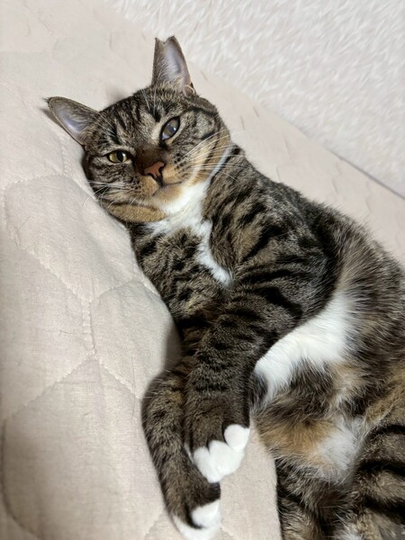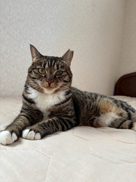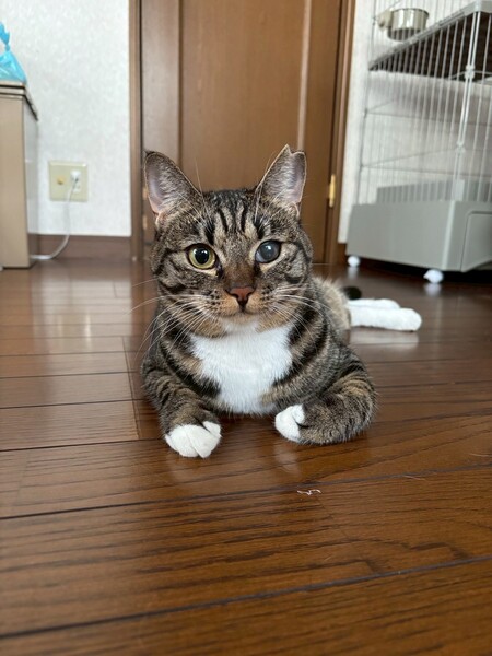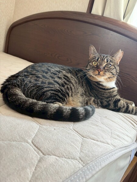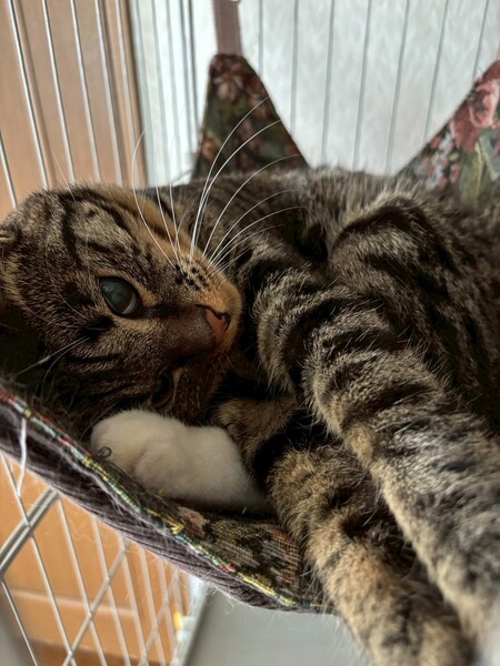 特徴(性格など) | ☆名前 かなう ☆性別 メス ☆年齢 推定1歳4ヶ月 (R6.5月末頃生まれ) ☆現在所在地 茨城県神栖市 ☆譲渡対象地域 東京、千葉、茨城 『預かり宅から2時間程度』 ☆避妊去勢手術 済 ☆ワクチン 済 最終接種日 R6.9.26 (来月上旬接種予定) ☆エイズFIV 陰性 ☆白血病FeLV 陰性 ☆単身者応募 不可 ☆高齢者応募 不可 ☆性格・特徴 警戒心が強いので甘えてくれるようになった今でも少しの動きでビクッとなったりしますが、様子を伺いながらも自分から近寄って来てくれて撫でるとゴロゴロと気持ち良さそうにしてくれます。 先住猫達にもスリスリと甘えに行きます。 ケージの中のハンモックがお気に入り。 ご飯は早食いのせいなのか、吐き戻しが多いので少量ずつ分けて与えています。 トイレは木質とおからを使用していて、最近はおからのトイレの方を選ぶ事が多いです。 最初の頃に布団の上に用を足した事が何度かありました。 対策として使わない時は掛け布団を別の場所に収納する事でベッドでの粗相は無くなりました。 マットレスだけの時はしないのでフワフワな感じが良かったのかも知れません。 保護当時の猫風邪の影響で左目に瞬膜と白濁が残っていますが視力に問題はなさそうです。 少し手のかかる事があるかと思いますが、ゆっくりと向き合っていただける方のご応募お待ちしております。 ☆健康状態 良好 ☆体重 4.5kg(R7.9.22) ☆マイクロチップ装着 済 ☆今後の医療措置 特になし ☆その他 里親募集中のとわくんと兄妹です。 |