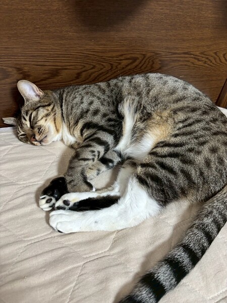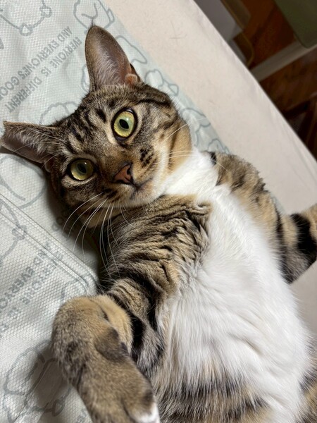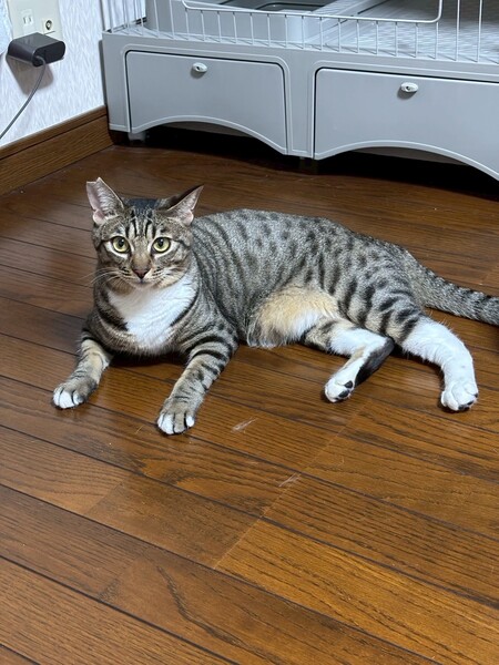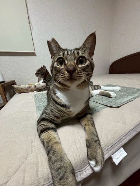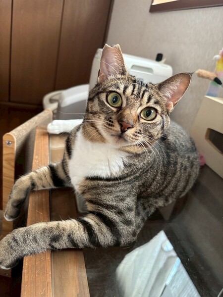 特徴(性格など) | ☆名前 とわ ☆性別 オス ☆年齢 推定1歳4ヶ月 (R6.5月末頃生まれ) ☆現在所在地 茨城県神栖市 ☆譲渡対象地域 東京、千葉、茨城 『預かり宅から2時間程度』 ☆避妊去勢手術 済 ☆ワクチン 済 最終接種日 R6.9.26 (来月上旬接種予定) ☆エイズFIV 陰性 ☆白血病FeLV 陰性 ☆単身者応募 不可(要相談) ☆高齢者応募 不可 ☆性格・特徴 とても人が好きで、すぐに寄って来てコロンと寝転び甘えてくれます。 お腹が空くとニャッニャッと鳴いてご飯を入れてある箱の上にちょこんと座って見つめて来ます。 朝方、寝ている仮母の髪の毛を引っ張ってお腹空いたアピールで起こされます笑 猫じゃらしなどのおもちゃで遊ぶのが大好きです。 他の猫達とももっと戯れて遊びたいようですが、ちょっかいを出しても活発な子が少ないため、本領発揮ができていない気もします。 トイレは木質、おからを使用。 最近はおからのトイレばかりを選んで用を足しています。 トイレの枠に足をかけてするスタイル笑 臆病な面もあり、初めての人や初めての場所、大きな音などした時には隠れてしまったりしますが、それほど長い時間はかからずに新しい環境に馴染んでくれると思います。 ☆健康状態 良好 ☆体重 5.6kg(R7.9.22) ☆マイクロチップ装着 済 ☆今後の医療措置 特になし ☆その他 里親募集中のかなうちゃんの兄妹です |
