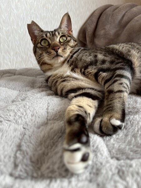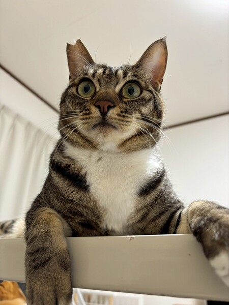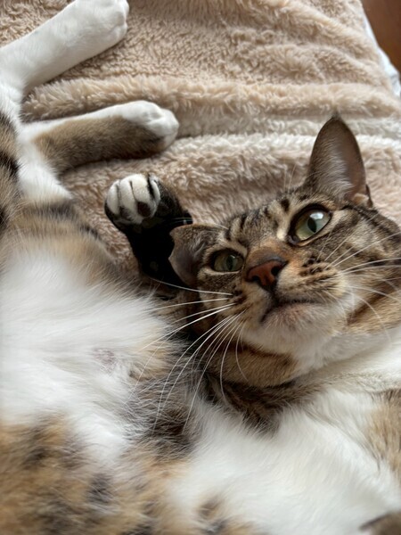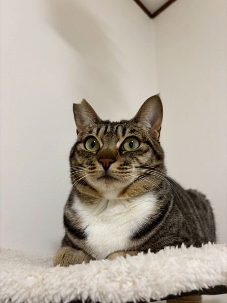 | 特徴(性格など) | ☆名前 とわ ☆性別 オス ☆年齢 推定1歳7ヶ月 (R6.5月末頃生まれ) ☆現在所在地 茨城県神栖市 ☆譲渡対象地域 東京、千葉、茨城 *預かり宅から2時間程度 ☆避妊去勢手術 済 ☆ワクチン 済 最終接種日 R7.10.5 ☆エイズFIV 陰性 ☆白血病FeLV 陰性 ☆単身者応募 不可(要相談) ☆高齢者応募 不可 ☆性格・特徴 とても人が好きで、すぐに寄って来てコロンと寝転び甘えてくれます。 お腹が空くとニャッニャッと鳴いてご飯を入れてある箱の上にちょこんと座って見つめて来ます。 朝方は寝ている仮母の髪の毛を引っ張ってお腹空いたアピールで起こされます笑 トイレはどの猫砂でも問題なし。 トイレの枠に足をかけてするスタイル笑 爪切りやシャンプーなどもイヤイヤながらも爪を立てることもなくやらせてくれる穏やかな子です。 臆病な面もあり、初めての人や初めての場所、大きな音などした時には隠れてしまったりしますが、それほど長い時間はかからずに新しい環境に馴染んでくれると思います。 ☆健康状態 良好 ☆体重 5.2kg(R8.3.2測定) ☆マイクロチップ装着 済 ☆今後の医療措置 特になし ☆その他 里親募集中のかなうちゃんの兄妹です |