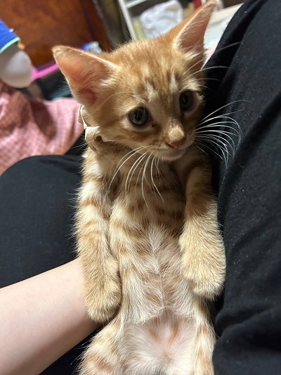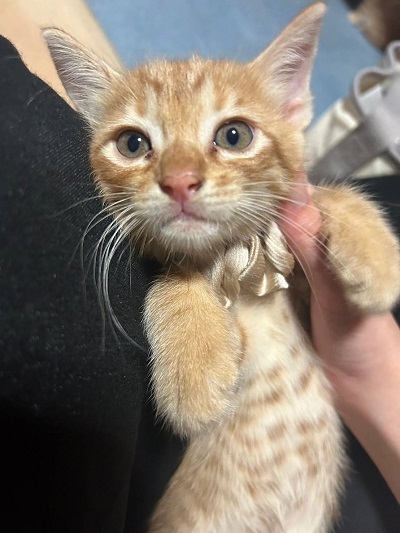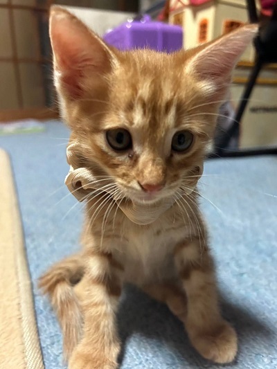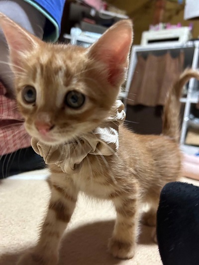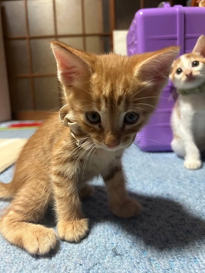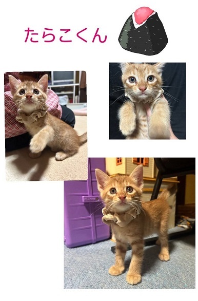 | 里親募集する理由 | 8月末台風が接近していた頃、家の駐車場から子猫の鳴き声がし見掛けない猫が現れたので探すと、チャトラの親子がいました コンクリートの上でかたまり、台風と暑さもあり、このままでは無事に育つことは出来ないと思い保護し、子育てを見守りました 6匹のうち3匹は知人が飼ってくれる事に また母猫はとても人馴れしているので、このまま飼う事にします |