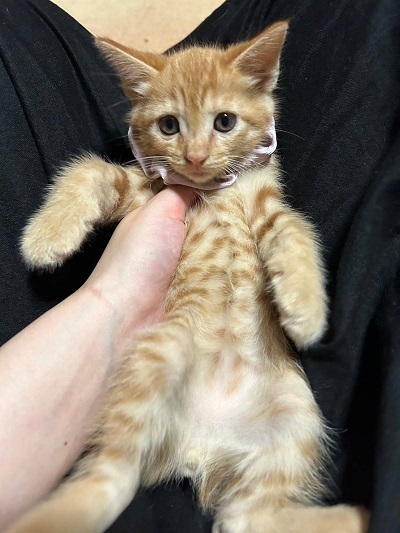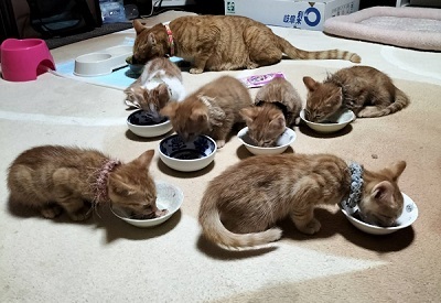| 里親募集する理由 | 8月末台風が接近していた頃、家の駐車場から子猫の鳴き声がし見掛けない猫が現れたので探すと、チャトラの親子がいました コンクリートの上でかたまり、台風と暑さもあり、このままでは無事に育つことは出来ないと思い保護し、子育てを見守りました 6匹のうち3匹は知人が飼ってくれる事に また母猫はとても人馴れしているので、このまま飼う事にします |