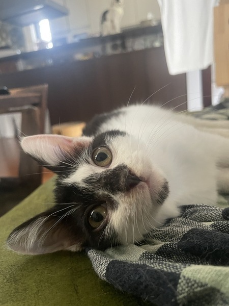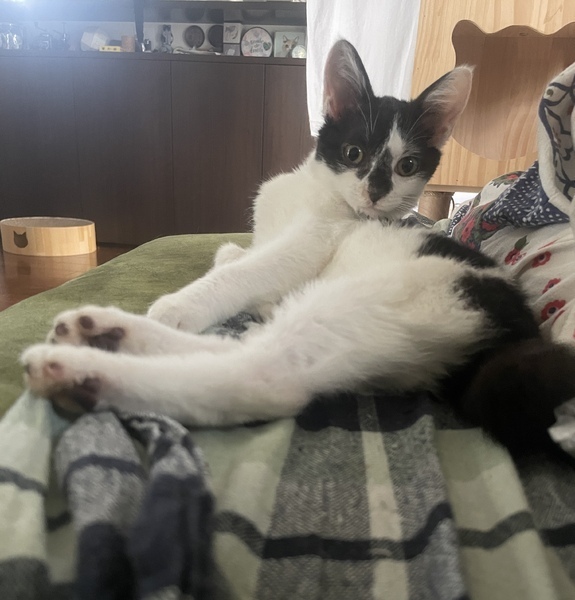 | 里親募集する理由 | 猛暑が続く7月半ば、手術済みの成猫しかいないお宅の庭に突然子猫が現れました。猫風邪で鼻水を垂らし、お腹を空かせて、地域猫用のキャットフードの大袋に上半身を突っ込み、貪り食う子猫、それが甜ちゃんでした。ハクビシンも出没する場所の為、心配したエサやりさんがボランティアに保護を依頼、捕獲器で捕まえられ、我が家にやって来ました。外にいた時はそれなりに警戒心があり、捕獲器からキャリーに移し替える際は威嚇もしましたが、病院で診察待ちしている間、撫でていたら、ゴロゴロと喉を鳴らし始めたうえ、へそ天になり、あっという間に人馴れしました。 甜ちゃんの様子は下記インスタグラムでご覧ください。 ●預かりさんインスタグラム https://www.instagram.com/rescuecats_in_purr_house ●保護主インスタグラム https://www.instagram.com/kijineko_ichimi/ |