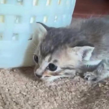 | 特徴(性格など) | 現在、生後2週間前後の可愛い子猫ちゃんです 薄いグレー色のキジトラで 尻尾がピンと立っているのが特徴です 現在、ミルクを飲ませていますが、 間もなく離乳できるような感じで 歯も少し生えてきているようです 病院へ連れて行き ノミダニ寄生虫駆除も行ったそうです |
