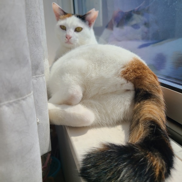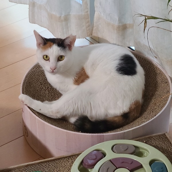 | 特徴(性格など) | 背中にぽんぽん♪と黒豆のような模様と、脇腹にハート模様がある白三毛の豆花(まめか)ちゃんです。 お外でごはんをもらって暮らしていました。 保護されてから人との生活を学んでいます。とても賢く、三毛猫らしいまめかちゃんです。 女の子らしいクールな一面、 甘えたいけど、どうしたら良いのかな?の一面、 遊びたいけどまだ緊張しちゃうな、の一面、 色んなことを豆花と楽しみながら暮らしていただける方とのご縁をお待ちしております。 豆花ちゃんは人との暮らしはまだまだ勉強中ですが、猫が大好きです。 預かり家の猫たちとはとてもうまく暮らしています。特に男の子が大好きみたいです! フレンドリーな先住ちゃんのいるおうちに行けたらいいな!(by豆花) |