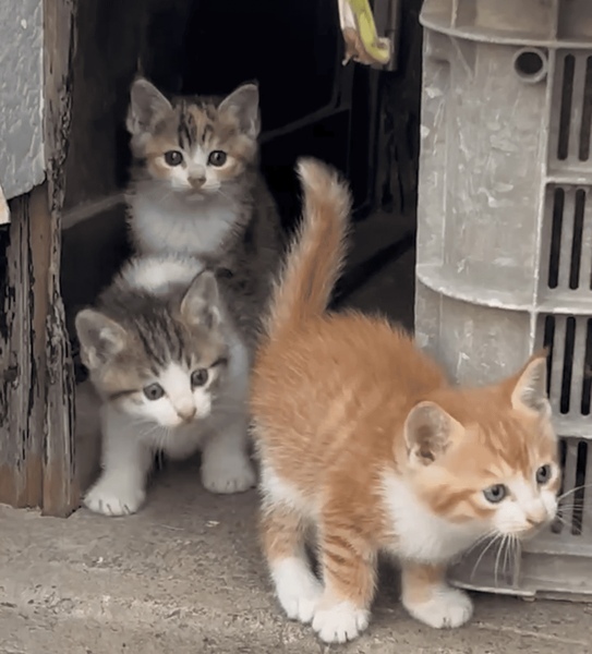 | 特徴(性格など) | 生後1ヶ月ちょっとくらいの子猫です。 縞三毛1匹、白茶2匹、白サバ2匹です。 茶色の面積が広い子は警戒心があまりなく 1番出てきてくれます。1番元気なイメージです。 1匹白サバの子がなかなか出てくれないで 1番警戒心が強いのかなと思います。 他の3匹は出てきてくれる時もあるし出てこない時もあるという感じです。 物の隙間からよく顔を出しています。 ほぼ毎日様子を見に行っています。 近所の家の人が親猫に餌をあげているので、子猫も親猫も体調は大丈夫だと思います。 今はまだミルクを飲んでいる時期だと思います。 だけど今日親猫が食べているドライフードを食べていたそうです。 もうドライフードも食べれる頃なのかなと思いました。 性別は見ることが出来ないので分かりません。 |