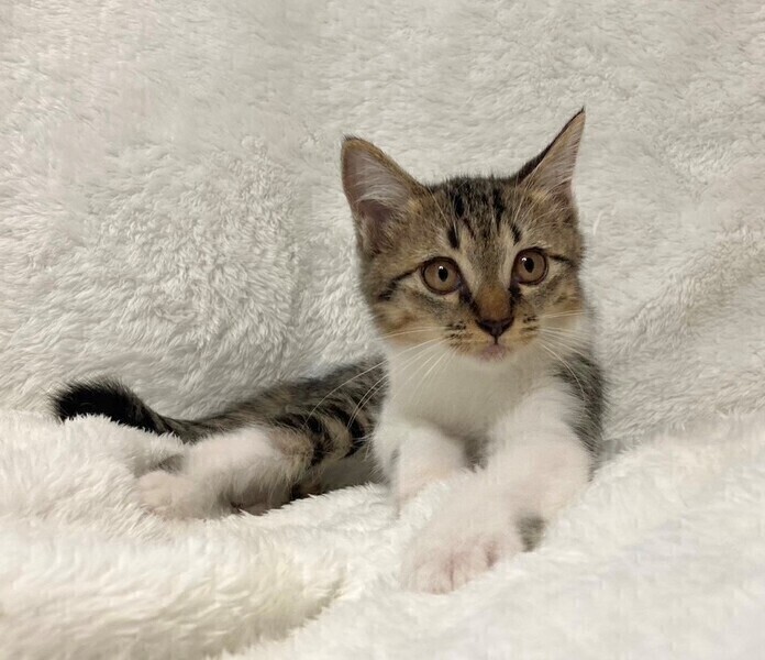 | 特徴(性格など) | 【仮名】ポールくん 【性格】丸顔が可愛いポールくん♪ よく見ると中々のイケメンです(笑) 保護当初からシャーのビビりでしたが 預かりさんに頑張ってもらったお陰で 譲渡会レベルにまで成長しました♪ でも兄弟のジョー君に比べると まだまだビビりですので しっかりおもちゃ遊びを頑張って イイ人認定を受けてください(笑) ちなみにハンモックが大好き♪ ビビりながら遊ぶのは大好きなようで にゃんプロやボール遊びも得意です! ぜひ兄弟のジョーくんと 一緒のお迎えをお願い致します♪ ※1ピキ譲渡不可 |