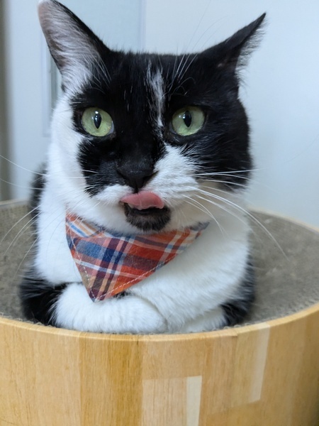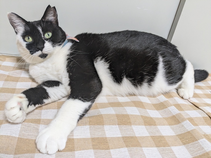 | 特徴(性格など) | 【仮名】ごまちゃん 【性格】食べること、遊ぶことが大好きなごまちゃん☆ 特にちゅーるには目がありません! ご飯は好き嫌いをせずにしっかりと完食し、トイレも完璧! 白黒柄ですが、すこし珍しい柄です。 ナデナデやマッサージをすると気持ちよさそうにゴロゴロ♪してくれます。 ボ~っとしてるとよくベロが出てるお茶目な一面もあります♥ 環境に慣れるまで少し時間はかかりますが ゆったりとお付き合いください☆ ※1ピキ譲渡可 |