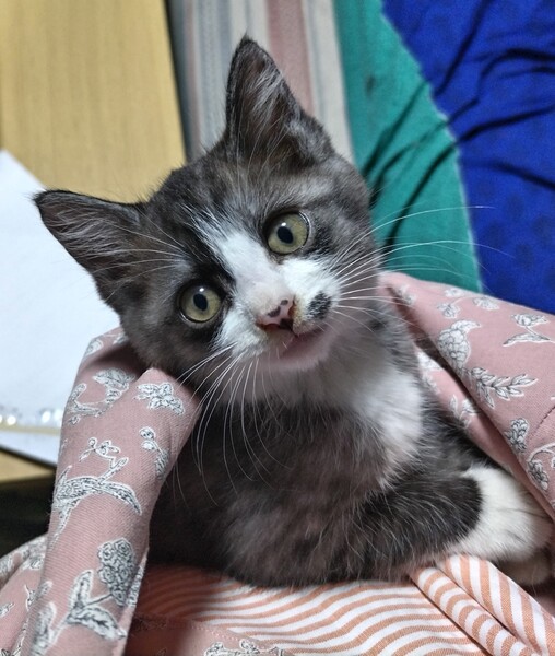 | 特徴(性格など) | グレーのはちわれちゃんです。 少し長毛が入っています。 性格は少しおっとりちゃんです。 |