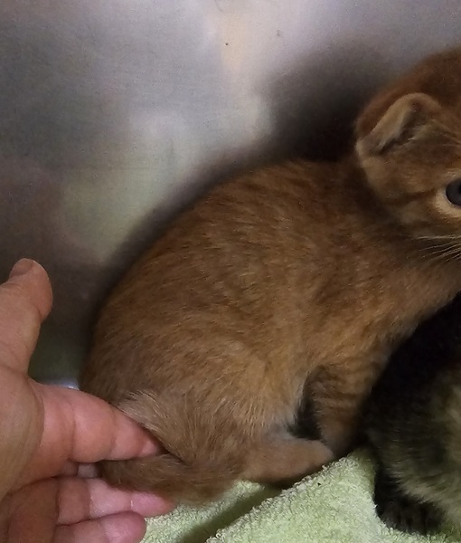 | 特徴(性格など) | 茶トラの折れ耳、鍵しっぽちゃんです (3枚目の写真にわかりにくいですが鍵しっぽのお写真載せています) お母さんがスコティッシュです びびりで最初は逃げますが慣れると甘えん坊です やさしい子で指をペロペロしてくれます 抱っこよりも近くに来たときなでなでしてもらう方が好きみたいです |