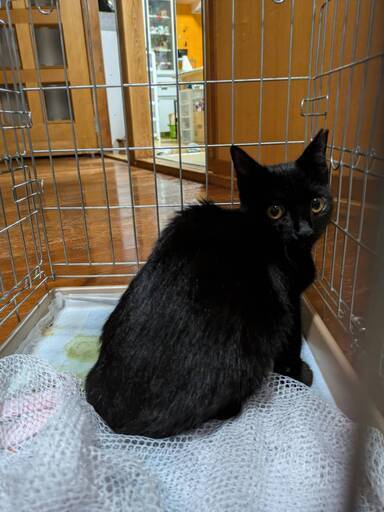 | 特徴(性格など) | 保護されたときはとても臆病でしたが、穏やかで人に馴れてきています。 黒猫です。 エイズ・白血病(-) 駆虫済み |