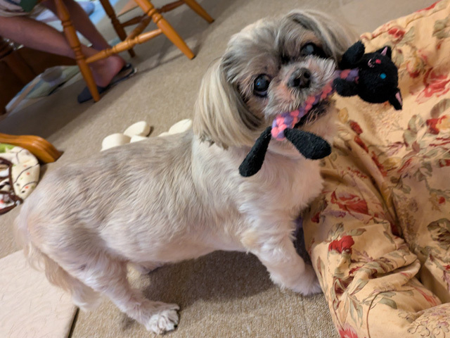 | 特徴(性格など) | ■ 基本情報 ・管理番号 【240919-12】 ・犬種・性別・名前(仮) シーズー ♂ ボンボン ・年齢・体重 14歳 体重 10.3kg(太り過ぎ) ・特徴 毛色は茶黒白でお顔は黒と茶多目です。 ・性格 おっとり穏やかさんです。引き取りから仮家まで、まだ一度も吠えていません。 ■ 暮らしについて ・日常過ごす場所 リビングでフリーで過ごしています。就寝時は同室のケージで大人しく寝られます。 ・食事 要ダイエットなので、良質のダイエットフードを固めにふやかして、鶏むね肉のトッピングを喜んで食べて くれます。 ドライのままのフードでは、トッピングだけ食べてしまいます。ドライのまま食べるか練習してみます。 ・トイレ トイレシートは練習中です。屋内でもしますが、屋外では気持ちよく排泄します。 ・散歩 好きな様子です。体重から足腰に負担にならないようにゆっくり、季節的にも短めにお散歩しています。 ・お留守番 お留守番はまだあまりないのですが、リビングの自分のベッドで寝ている様子をお留守番カメラで確認して います。フリーで問題ありません。 ・外出 車酔いはありません。キャリー内でもドライブベッドでも大人しく移動できます。 ・お手入れ まだ日が浅いので、我が家でお風呂はまだですが、お顔を拭いたり、足拭きはイヤがったり引っ込めたりします。 慣れればさせてくれる感じはあります。 ・他犬との関係 しつこくする事はありません。むしろ距離をとる方です。 ・人との関係 男女関係なく接します。オヤツをもらったり、慣れてきたら駆け寄ってきます。 ・お願いしたいこと 年齢的にも、体の負担にもなるので、ゆっくりでも体重管理をお願いします。 トリミング犬種です。定期的なブラッシングやトリミングをお願いします。 高カルシウム血症改善投薬中です。継続治療と定期的な経過検診をお願いします。 ■ 医療管理について(実施日) ・混合ワクチン 〇 5種(24/3/5) ・狂犬病予防注射 〇 (24/4/9) ・フィラリア抗原検査 - 陰性(9/10) ・不妊手術 〇 引取時去勢済み ・マイクロチップ 〇 引取時装着済み ・健康チェック 〇 (9/19) ・スケーリング × (24/11〜)予定 ・便検査 〇 (9/10) ・その他の医療措置 駆虫ドロンタール(9/10) 駆虫バイコックス(9/10) ・必要な継続医療 高カルシウム血症なので改善薬の継続治療をお願いします。 甲状腺に腫瘍を確認しています。 投薬コントロールか切除を検討中ですので、それに伴う経過検診をお願いします。 ・現在の一時預かり先 茨城県つくば市 ・預かりスタッフ ふろまあじゅ ・預かりブログ Wan☆Life「ボンボン」(2024/9/21~) ・http://archazukari.blog.fc2.com/blog-category-21 ・引取時の様子 ・https://ameblo.jp/shippo-chuuu/entry-12868212626.html |