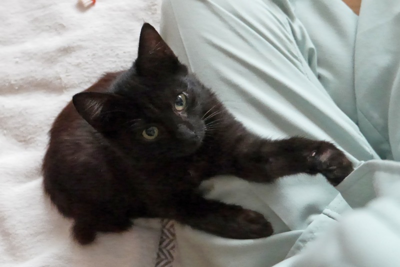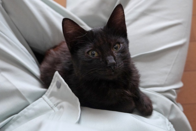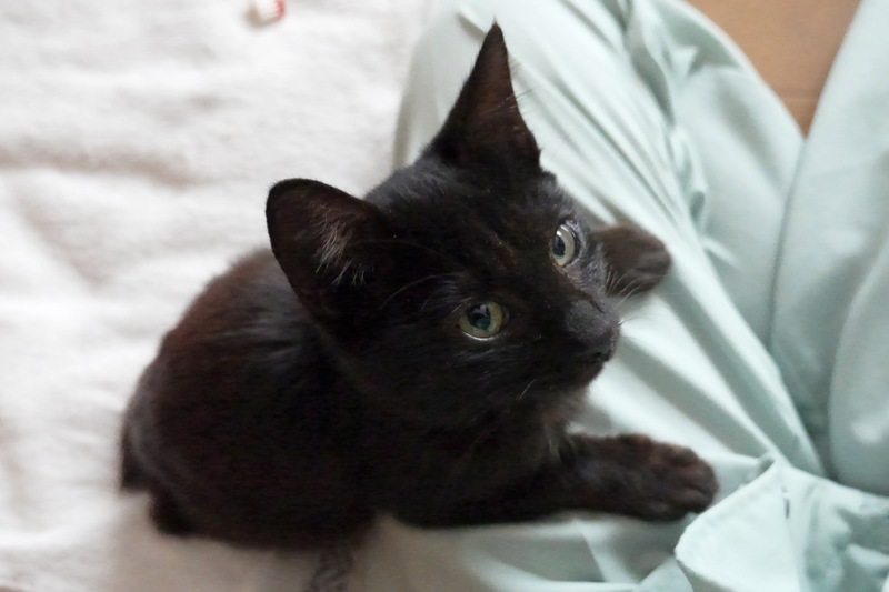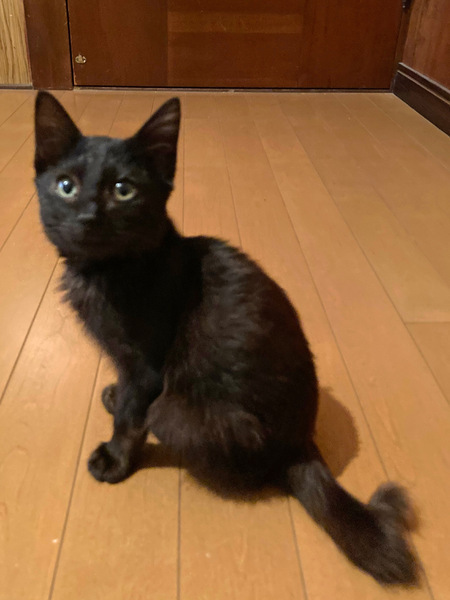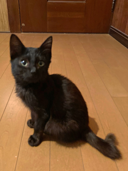 | 特徴(性格など) | 人懐っこく、優しい性格です 甘えん坊でひざの上に乗りたがり、ゴロゴロふみふみします ボールや猫じゃらしで元気いっぱい遊んでいます 人にもじゃれつきますが爪を立てない優しい性格です 全体に黒猫に見えますが、濃い茶色が混じっていて、胸とお腹の下に白い毛もあります カギしっぽが特徴的です ごはんはウエットとドライ混合 ウエットが好きです トイレはできています ボールや猫じゃらしが好きで元気いっぱい遊びます 夜もしっかり寝てくれます 猫風邪治療中 目ヤニはなくなりましたがくしゃみはまだあります 駆虫薬済み 血液検査し、白血病は陰性でしたが、FIPウイルスはキャリアでした |