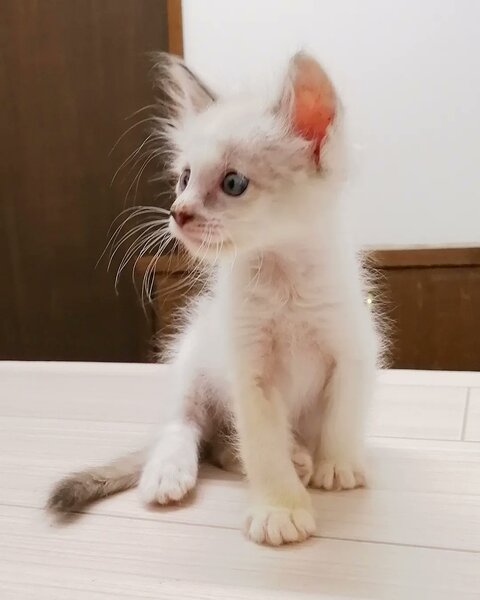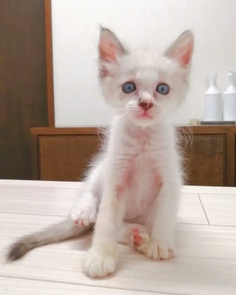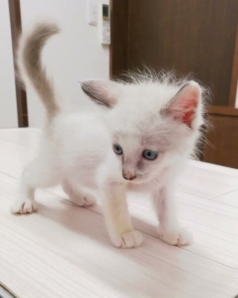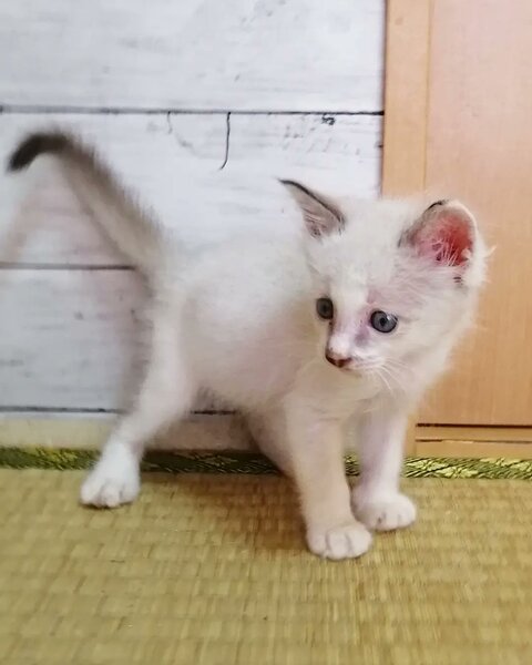 | 特徴(性格など) | とっても人懐こく、先住猫とも仲良く甘えて遊ぶ、本当に可愛い仔猫です。 白と薄いグレーカラーが美しいです。 |