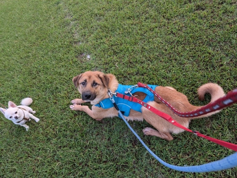| 特徴(性格など) | 【愛称】ふぅり 【犬種】ミックス 【性別】オス(R6/4 / 23 去勢手術済み) 【年齢】推定2歳 【毛色】茶 【体重】約22kg( R6/10/11現在) 【状態】フィラリア(-)、混合ワクチン接種済み、検便(ー)、駆虫薬投与済み、ノミダニ駆除済み 、狂犬病予防接種済み、マイクロチップ装着済み 【人馴】少し時間がかかります 【預かり場所】千葉県習志野市 【日記】インスタグラム https://www.instagram.com/balius24 【経緯】茨城県動物指導センターより引き取り 【性格・その他】 これまで人との生活を経験してこなかったと思われ、人から近寄ると少し距離を取ろうとしますが、おやつを持っている人には自ら近寄ったり自宅内では預かりボランティアの後ろをついてくることが増えています。 馴れれば人のそばにいるのが大好きな無邪気で甘えん坊な男の子になるのではないかと思われます。 食事は1日2回、ドライフードと手作りトッピングを食べています。食欲旺盛で初対面の人の手からでもおやつを食べられます。 排泄は外で済ませることが多いですが、留守番が長い時はシートでおしっこをしています。 お散歩は1日2回、各40〜60分程度行っています。普段は強い引きはなく穏やかにテンポ良く歩けますが、気になる犬や猫がいると動かなくなるか突発的な行動をとる時がありますので、しっかりとリーダーシップを取る必要があります。散歩時の逸走防止には細心の注意が必要です。 お留守番は室内フリーで8時間程度は可能です。今のところ大きないたずらはなく、我が家の小型犬とも付かず離れず穏やかに過ごしています。 茨城県動物指導センター収容時から左前脚が変形していました。レントゲン検査の結果、左前腕部(橈骨と尺骨)と指にかなり以前の骨折痕がありました。原因不明ですが前腕部は彎曲した状態で癒合しています。 現在は支障なく歩いていますが、他犬に比べ体重を前脚に掛ける比率が高いようで太ると左前脚に負担がかかることから体重管理は必要です。 また、高い所から飛び降りたり、大はしゃぎして走り回る等、脚に負担の掛かる行動を続けると軟骨や関節への負担により痛みが生じる可能性があるとのことです。 このため、今後は体重管理、脚に負担の掛からない生活、サプリメント服用で様子を見る必要があります。 左前脚について今後どのようになるかはわかりませんが、治療などの可能性も考えられますので定期的に受診ができる方、まだ人との生活に慣れておらず困り顔の「ふぅり」をこのまままるっと包み込んでくださる、愛情いっぱいに安心して暮らせるご家庭に迎えていただければと思っています。 日々の変化はインスタグラムで紹介していますので、お問い合わせやご応募の前に必ずご覧ください。 引き続き室内飼育で、定期的なワクチン接種やフィラリア予防などの健康管理、脱走逸走防止への細心な注意、近況報告を必ずお約束していただける関東圏内のご家庭で、「ふぅり」を終生家族の一員として大切にしてくださる方からのお問い合わせをお待ちしております。 【お申し込み】↓よくお読み下さい↓ 特徴、譲渡条件や譲渡までの流れをよくお読み頂き、 直接 いぬ助けのホームページよりアンケートを送って下さい。 ↓ → https://www.inudasuke.com → 里親希望アンケート (こちらのサイトのア ンケートではお時間を頂く場合がございます。 直接いぬ助けのHPよりお願いします。) 【いぬ助けSNS】 いぬ助けHP → https://www.inudasuke.com フェイスブック→ https://www.facebook.com/inudasuke/ インスタグラム→ https://www.instagram.com/inudasuke/ |