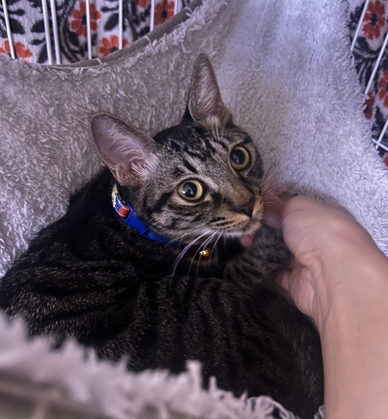 | 特徴(性格など) | <初期医療> エイズウイルス検査:陰性 白血病ウイルス検査:陰性 ワクチン接種:済み ノミ・ダニ駆除薬:済み 糞便検査:済み 去勢手術・血液検査:済み マイクロチップ:済み 推定1歳1ヶ月くらいのキジトラの男の子です。穏やかな性格で、ナデナデ大好きでゴロゴロの甘えん坊です。とても綺麗なキジ模様で誰が見てもカッコいい&可愛いです。一緒に保護している妹ロビン(サビ三毛)と仲良しなので、一緒迎えてくださる里親様を希望します。 |