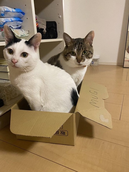 | 特徴(性格など) | キジシロ:オス、3歳、賢い、人懐っこい 白黒:オス、2歳、おとなしい、人懐っこい |