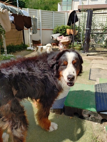 | 特徴(性格など) | バニくん とっても甘えん坊の大型犬 ○バーニーズマウンテンドッグ、12歳(2025.1上旬時点)のシニアの男の子ですが、表情が可愛らしく甘えてくるしぐさはまだ子供のようです。 ○体重は31.5kg(2025.3下旬時点)の大型犬です。 ○ごはんの食べ方にムラがあり残すこともあります。好き嫌いがあるようです。 ○トイレは夜は決まった場所(トレー)でできることもあります。日中は庭に出てすることがほとんどです。 ○お散歩はゆっくり人に合わせて歩くことができますが、興味があるものに(止まっている車など)近づいてしまうこともあります。大型犬なので力があります。 ○甲状腺機能低下症のため、腰から尻尾の先まで脱毛が見られましたが、現在はだいぶ良くなってきています。 ○おしっこシーツや新聞紙、小さめの布などをかじって食べてしまうこともあるので、物の置き場所に気を付けてください。 ○ごはん以外の物のを食べている時など、それをとりあげようと手を出すと、怒ることがあるので注意が必要です。 ○他の犬が吠えていると一緒になって吠えてしまいます。 ○大型犬のため、広いスペースがあると生活しやすいです。暑さに弱い犬種なので、温度管理には十分に配慮してください。 ○人が大好きで、頭や体を押し付けながら甘えてきます。たくさんなでなでして甘えさせてくれるご家庭を希望します。 ○犬種としてはハイシニアになります。ご理解の上お申し込みください。 【健康状態】 ワクチン:6種混合ワクチン接種済 不妊手術:不明 マイクロチップ:済 駆虫:済 狂犬病ワクチン接種:済 ●甲状腺機能低下症と診断されており、服薬しています。継続する必要があります。 ●お腹が緩くなりやすいので、整腸剤をのんでいます。 ●尻尾の真ん中あたりに腫瘍があり、経過観察中です。 ●薬の副作用で食欲がなくなり、体重がかなり減りました。現在は回復傾向にあります。 ●前立腺腫瘍の疑いがあり服薬しています。(2025.3時点) ★★★お見合いを設定することも可能です。まずはお申し込みください。★★★ |
