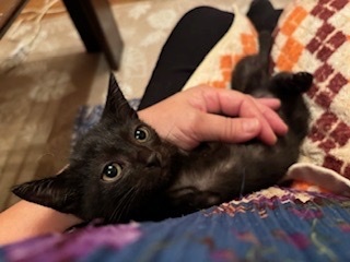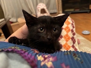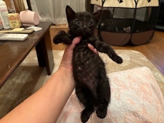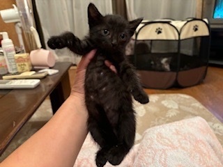| 特徴(性格など) | <初期医療> エイズウイルス検査:陰性 白血病ウイルス検査:陰性 ワクチン接種:済み ノミ・ダニ駆除薬:済み 糞便検査:済み とても可愛い黒猫(黒トラ)子猫の女の子です。よく食べて、よく遊んで、とても元気です。お腹が少し白く背中がトラの魅力的な模様です。もうすぐ2ヶ月になりますが、小さな子猫なのでお留守番のないご家族様や7兄弟で保護しましたので仲良しの兄弟(妹)と2匹一緒に迎えてくださるご家族様を希望します。 べティの日々の様子は、以下のブログをご覧ください。 |