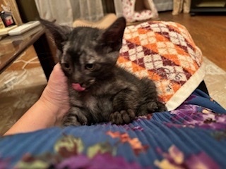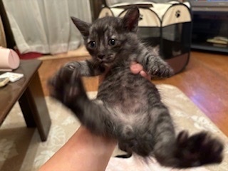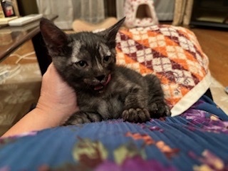 | 特徴(性格など) | <初期医療> エイズウイルス検査:陰性 白血病ウイルス検査:陰性 ワクチン接種:済み ノミ・ダニ駆除薬:済み 糞便検査:済み とても珍しいブラックスモークの子猫の男の子です。よく食べて、よく遊んで、とても元気です。尻尾が鍵尻尾です。お顔の模様が綺麗で写真より実物の方がとても可愛いです。もうすぐ2ヶ月になりますが、小さな子猫なのでお留守番のないご家族様や7兄弟で保護しましたので仲良しの兄弟(妹)と2匹一緒に迎えてくださるご家族様を希望します。 |