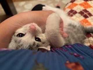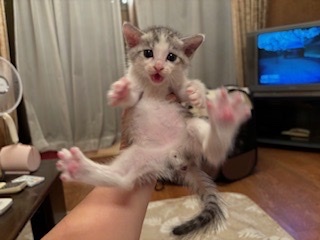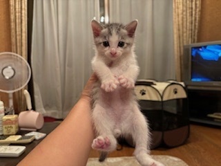 | 特徴(性格など) | <初期医療> エイズウイルス検査:陰性 白血病ウイルス検査:陰性 ワクチン接種:済み ノミ・ダニ駆除薬:済み 糞便検査:済み 可愛いグレー白の子猫の男の子です。よく食べて、よく遊んで、とても元気です。尻尾が長尻尾です。珍しい色合いでルックスも性格もとても可愛いです。もうすぐ2ヶ月になりますが、小さな子猫なのでお留守番のないご家族様や7兄弟で保護しましたので仲良しの兄弟(妹)と2匹一緒に迎えてくださるご家族様を希望します。 |
