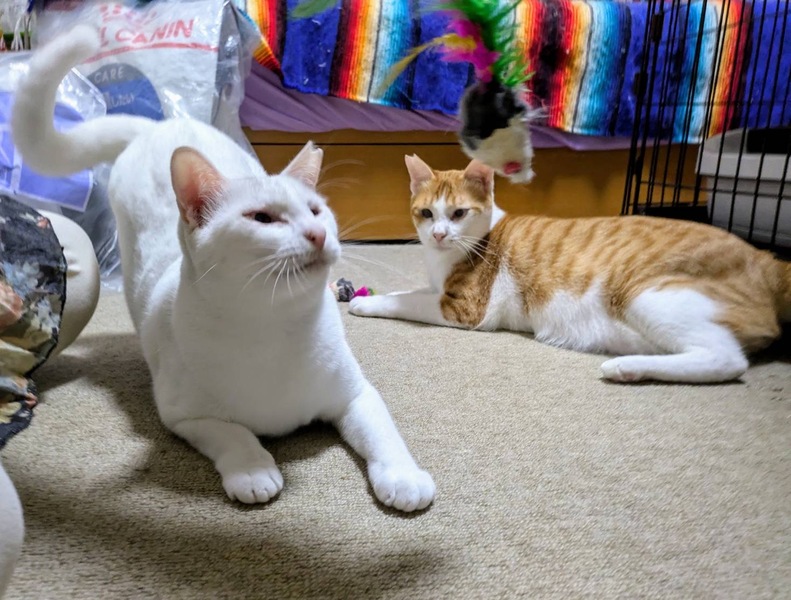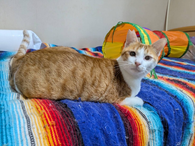 | 特徴(性格など) | "茶白のかわいい子です。 お目々の治療を済ませ、今では元気に不自由なく暮らせています。 お外でどうやって生きて来れたのか?きっと優しい人たちに面倒をみてもらっていたのかなぁ♡と、おおらかさと性格の良さを見るにつけ人と猫との関わりの大切さに感動を覚えます。 100%の信頼を体じゅうから伝えてくれるサン&ポーが愛おしくてたまりません♡ 【※お目々が見えないお外の生活でもずっと一緒にいた兄妹なのでポーちゃんと2匹一緒のお迎えを希望しています。】 ハンデを持った猫ちゃんではありますが、素敵な相棒としてお迎えくださるかたとの出会いを待っています。" |