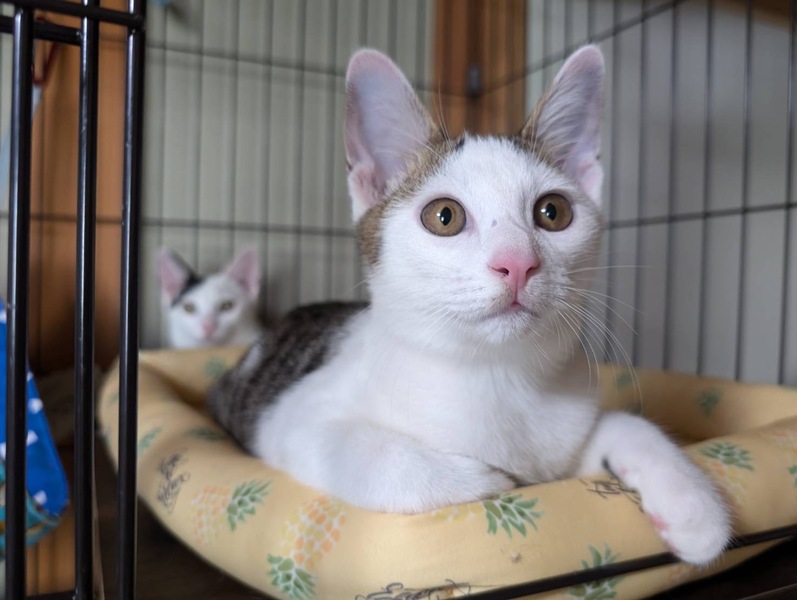 | 里親募集する理由 | 漁港で子育て中の母猫が海に落ちて亡くなった、と連絡があり すぐに子猫達を保護しに行きました。 5匹の子猫は帰らぬお母さん猫を待ち続けて 頑張っていました。 3匹の子はすでに里親様のところで幸せに暮らしています。 残る2匹も 亡くなったお母さん猫の為にも 早くずっとのお家を見つけてあげたいと思っています。 どうぞ宜しくお願い致します。 先住猫さんがいないご家庭なら 兄妹2匹一緒でのお迎えを ご検討いただければ 嬉しいです。 |