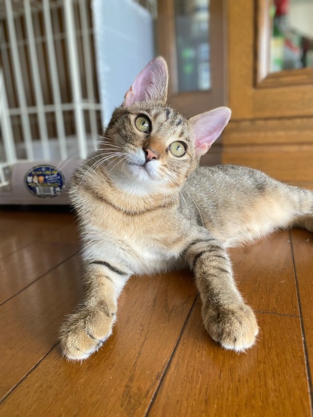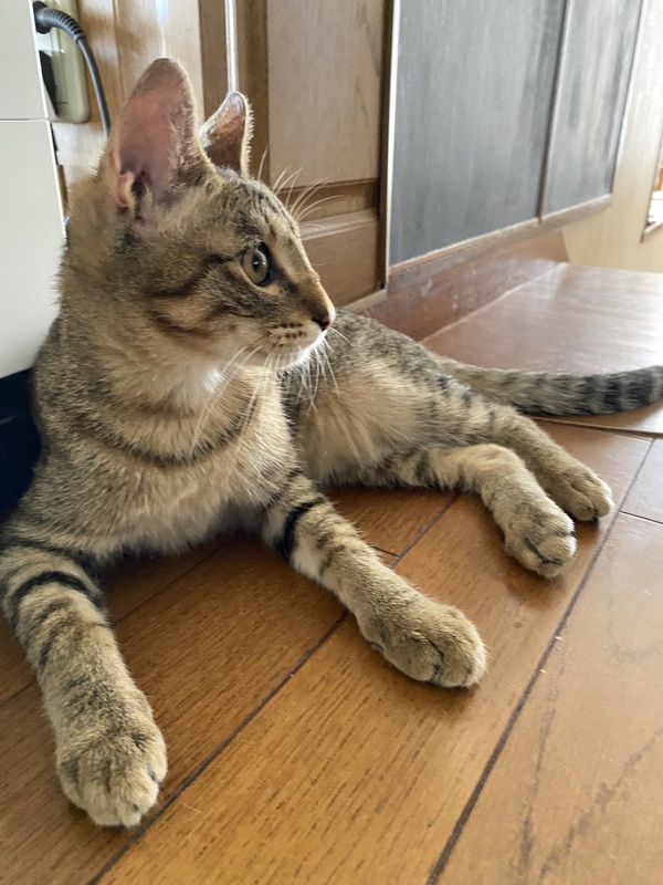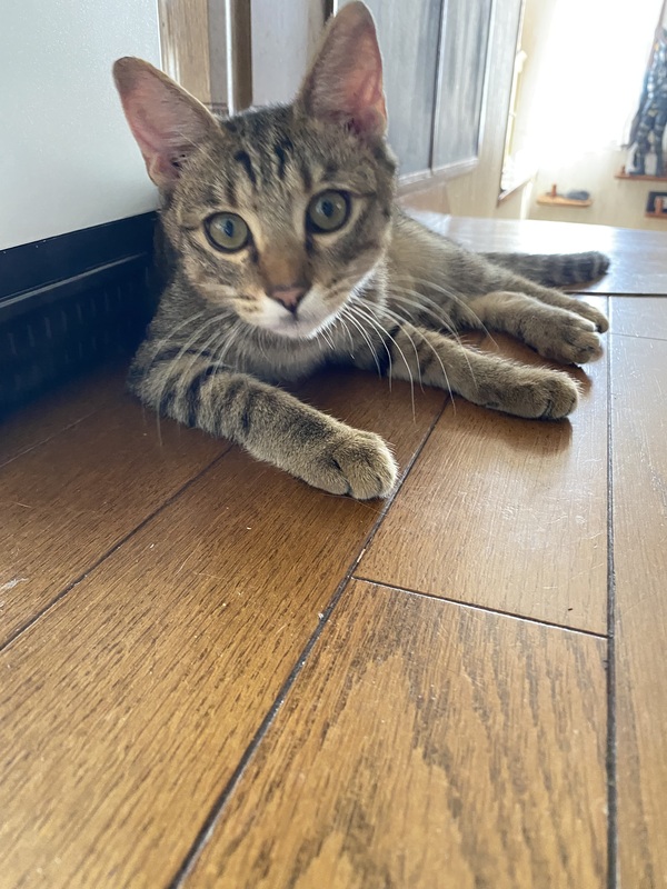 | 特徴(性格など) | 兄弟猫の朔と一緒に保護されました。 禄は、茶色が強いキジトラ。 朔は、黒が強いキジトラです。 同じくらいに保護された、姉妹猫と4匹で仲良く遊んでいます。 夜は、朔と仲良く寝ています。 2匹でお迎え頂ける方も募集しています。 |