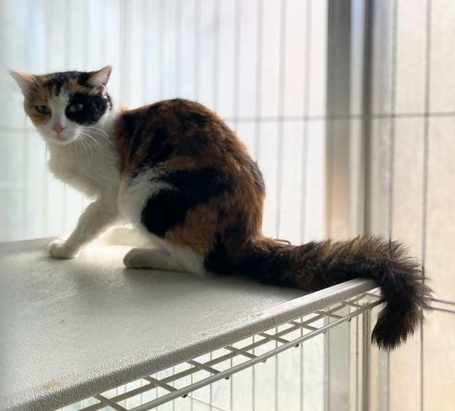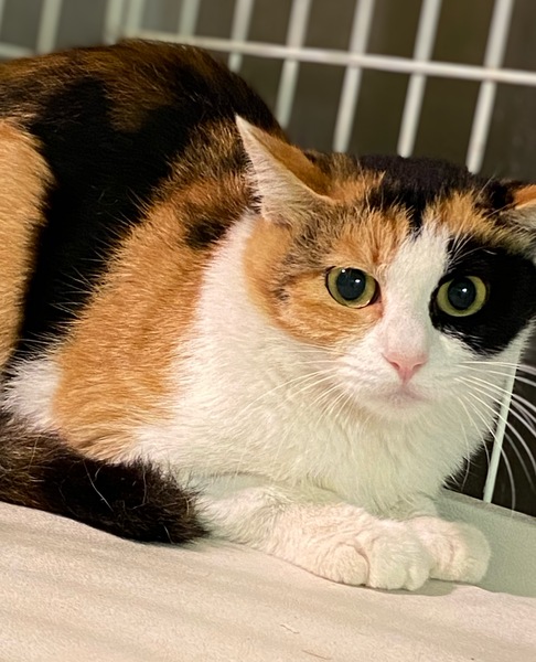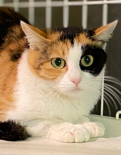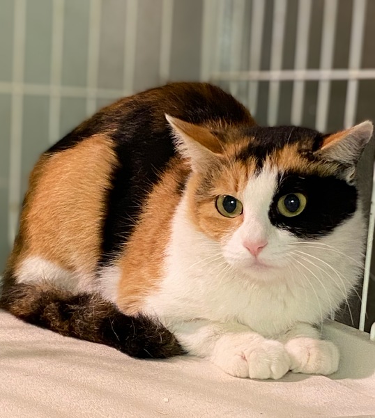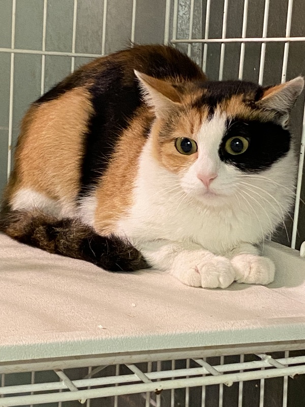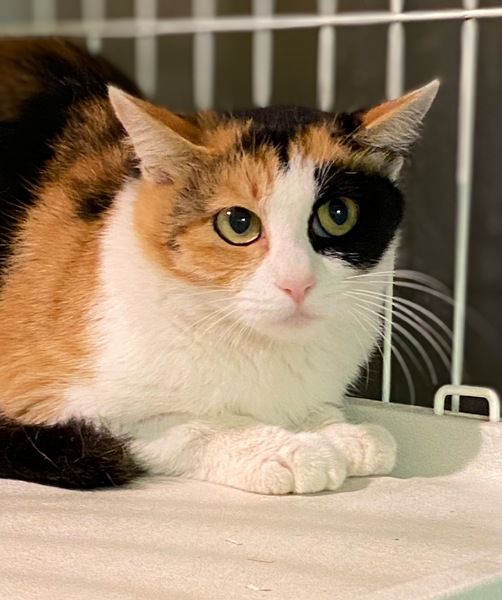 | 特徴(性格など) | 綺麗なはっきりした柄の三毛猫です。 推定1歳くらい。 白茶のカルムと一緒に保護されました。 目の周りの黒が可愛い子です。 |
