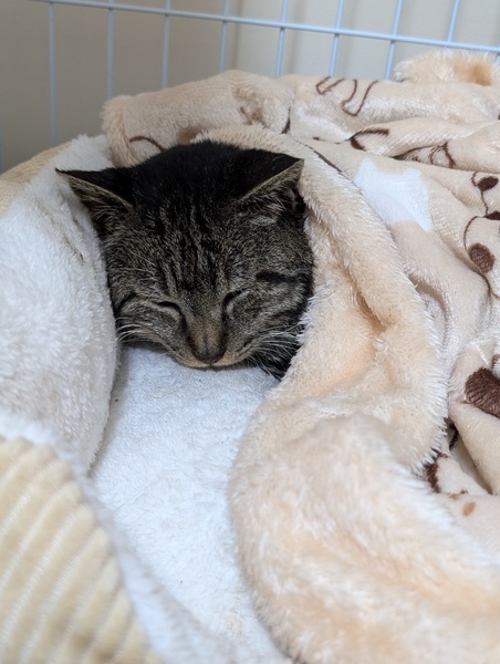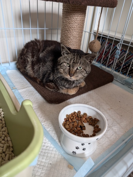 | 特徴(性格など) | 現在人馴れ訓練中です! だんだんなでなでの気持ちよさを知ってくれて、噛まれたり叩かれたりせずなでられるようになってきました♡ 元々はとっても甘えん坊な性格だと思われます。 ・黒と茶、アメショーのような模様 ・年齢不詳 →どこの病院でも「若くはないね」とのこと ・ちょっぴり臆病 ・鳴き声がかわいい♡ →夜鳴きはうちに来てから一度もありません ・エイズキャリア陽性 ・猫白血病陰性 ・駆虫済み ・腎臓と肝臓の数値が悪く、現在通院中 →検査結果との兼ね合いでワクチン接種、去勢手術は受けていません ・11月1日に詳しい検査を控えています |