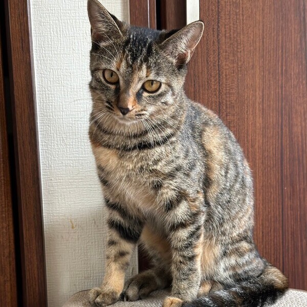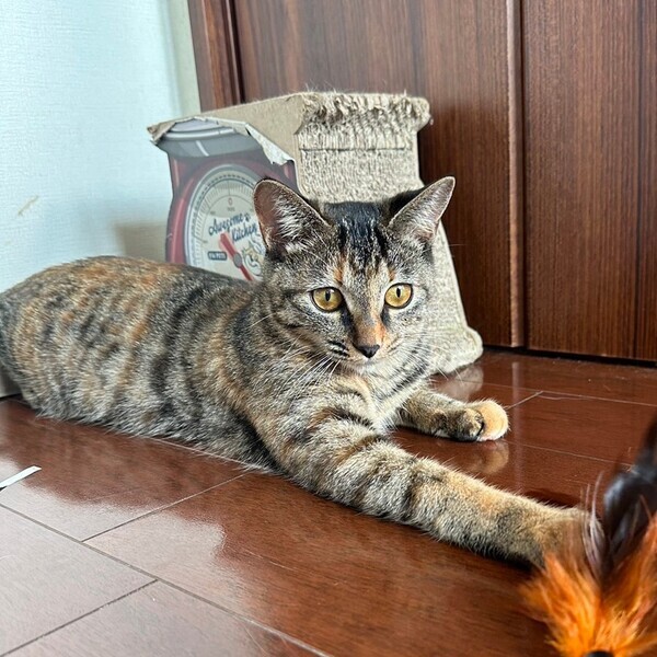 | 特徴(性格など) | まだ急な動きに少し怖がってしまいますが、撫でるとゴロゴロスリスリで抱っこもできる穏やかな女の子です。 これから人との暮らしが長くなればもっともっと甘えん坊になりそうです。 猫も大好きで、他の猫とも仲良くやっています。 とても身軽で元気いっぱい、おもちゃの誘いは断りません!無邪気なとても可愛い子です。 キジトラっぽい模様に赤みが入った綺麗な毛色、長い真っ直ぐしっぽのムギワラ猫ちゃんです。 推定2024年4月生まれ 不妊手術済み ウイルス検査(エイズ、白血病共に陰性) 三種混合ワクチン1回接種 ノミ、ダニ駆除済み(1回) 便検査、駆虫済み(1回) 11月に2回目のワクチン接種と駆虫、マイクロチップを入れてからのトライアルとなります |