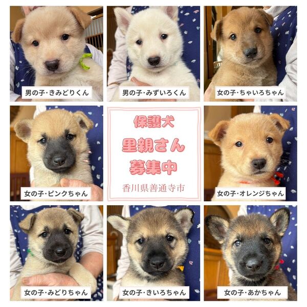 | その他(譲渡条件など) | 10/28現在、動物病院での健康チェックをすませています。 フロントライン済。フィラリア薬投与済。 譲渡はもう少し大きくなって 1回目のワクチン接種が終わってからと考えています。 見に来ていただいても大丈夫ですが、当日の引き渡しはできません。 里親に決まったら、こちらから、ご自宅まで届けに行きます。 譲渡条件下記に記していますが、今後増える可能性があります。 香川県は非常に不幸な犬猫が多い県です。 昨今、テレビ番組のおかげで保護犬の知名度も上がってきました。 ぜひ、こういう保護犬を家族に迎える選択をしていただけませんか? 【譲渡条件】 ・持ち家にお住まいで、飼育スペースを確保できること ・室内飼育を希望します ・やむを得ず、室外飼育をする場合は、夏の暑さを避け、台風のような激しい雨風の時や、病気の時などは、玄関に入れる等対処をしてくださる方 ・家族全員が、里親になることに賛成していること ・避妊去勢をし、ペットに関する法令を遵守し、愛情と責任を持ち、怪我や病気の時は病院に連れていき、終生大切な家族として迎えてくれる方 ・単身、高齢の場合は、もしもの時に引き取り家族がいるなど、後見人をたてることのできる方(後見人のサインをいただきます) ・身分を証明していただくために、免許証等を見せていただきます。 ・私の知人、友人が「この人なら任せられると」太鼓判を押してくださる場合は、お届け可能地域は問いません。 |