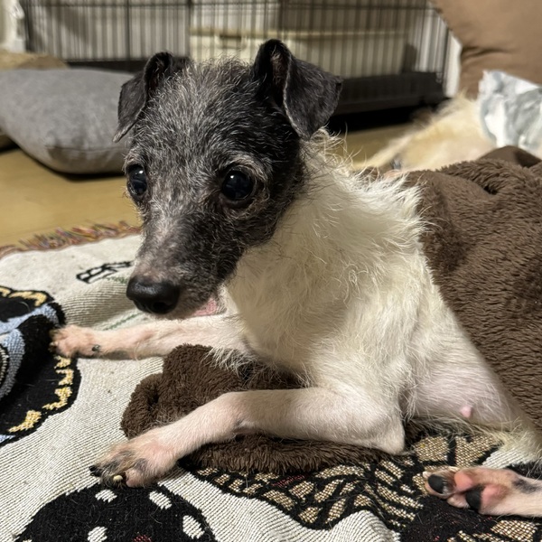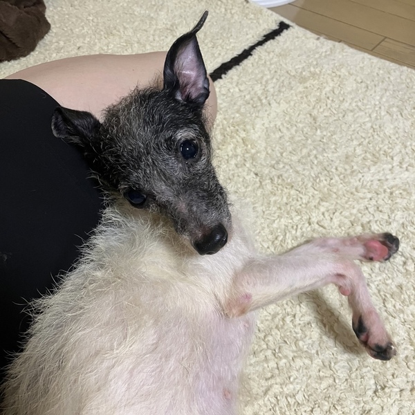 | 特徴(性格など) | イタグレMIXで、白と黒のブチ模様にきゅるんとしたお顔、小さなサイズ感が可愛いエリちゃん。 控えめな性格なのに実はすごく甘えん坊で、お膝の上でなでなでやハグをしてもらうのが大好きです。 生まれつき盲目だったようで光も見えていないようですが、逆に生まれつきだからこそ本犬は生きにくいわけではないようで慣れています。 耳と鼻で器用に危険を回避しながら歩き、ゆっくりと探索します。 盲目の犬であるリスクはあまりなく、とても飼いやすい子という印象です。 お散歩をしてきた経験がないのと、とても慎重な性格なのでお散歩はトレーニングが必要です。 毎日同じコースを歩く、のような習慣化でお散歩はできるようになると思います。 とても甘えん坊な性格で、寂しがり屋です。 危ないことはしない性格ですが、やはり目のこともあるのでお留守番が少ないお家を希望です。 今はお留守番のときにはゲージの中でいい子にできています。 トイレはフリーの状態で100%失敗なしにできます。 先住さんがいても問題ないですが、おとなしすぎていじめられるタイプではあるのでアグレッシブな先住さんは難しいです。 猫ちゃんの先住さんがいる場合は、猫の置き餌を食べてしまうので対策が必要です。 お子様は小学生高学年以上のご家庭が良いかと思います。 あまりに騒がしい環境は苦手で、静かなゆっくりとした環境が本犬は好きです。 生まれてからずっと多頭崩壊の現場で放置されていたエリ。 エリが安心して沢山甘えられる、素敵なお家を探しています! |